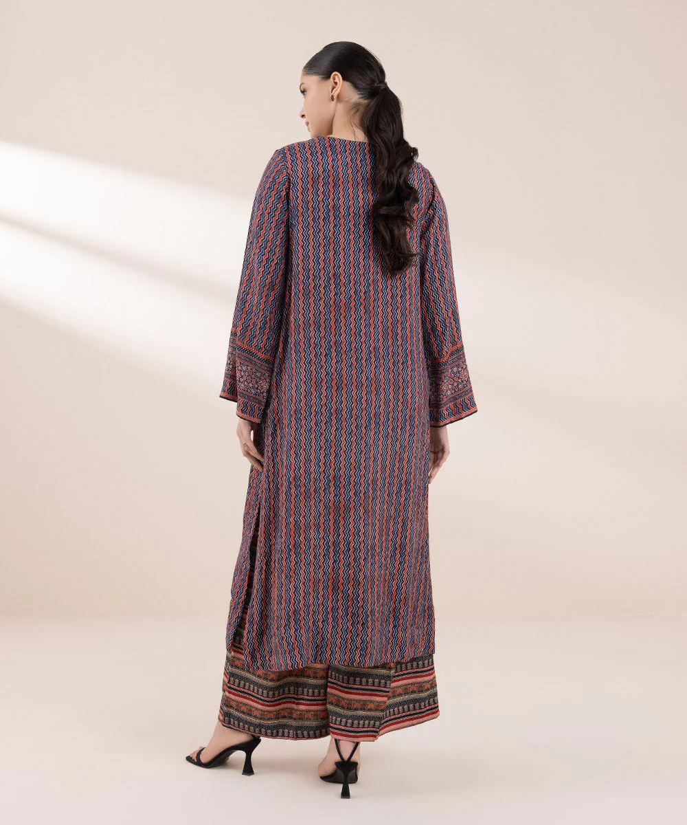 Printed Front with Beads, Printed Back, Full Sleeves, Round Neckline with a slit